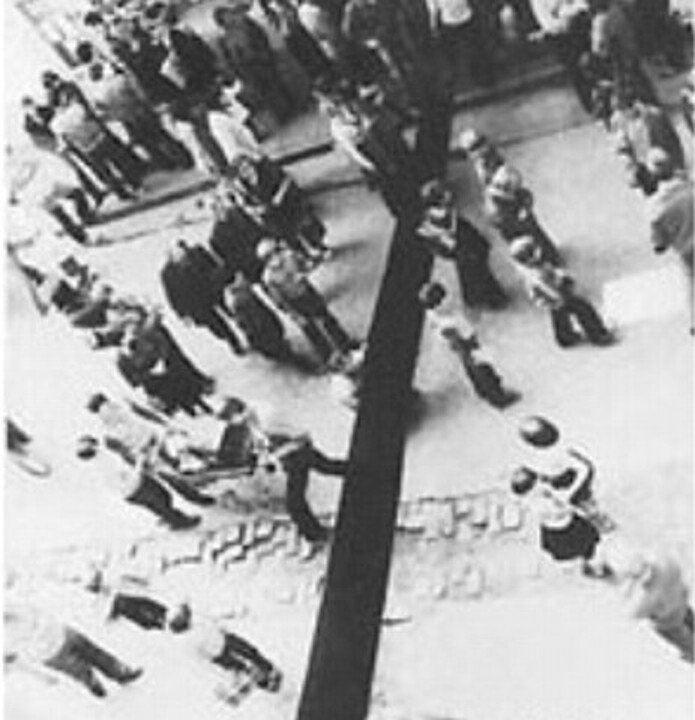 powtórzenie happeningu "Przegrodzenie ulicy czarną szmatą celem zrobienia zamieszania ..". oraz odsłonięcie tablicy pamiątkowej.