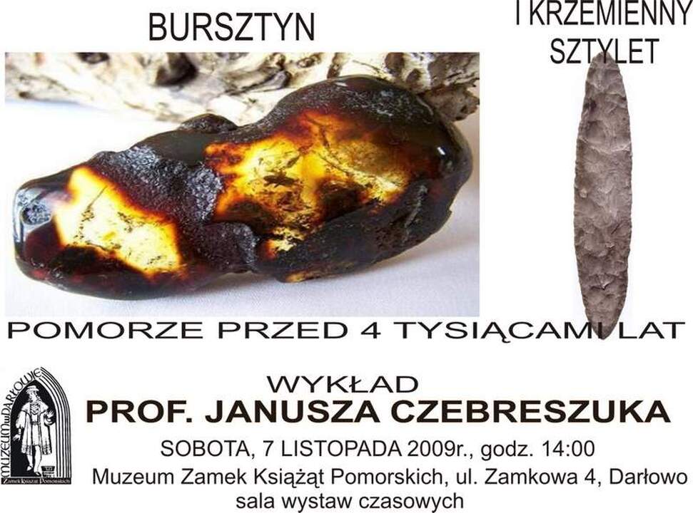 Muzeum Zamek Książąt Pomorskich w Darłowie zaprasza w najbliższą sobotę 7 listopada 2009r. na wykład archeologa prof. Janusza Czebreszuka zatytułowany „Bursztyn i krzemienny sztylet. Pomorze przed 4 tysiącami lat". Wykład rozpocznie się o godzinie 14:00. Towarzyszy on wystawie archeologicznej „Historie w ziemi ukryte", którą możecie Państwo oglądać w darłowskim muzeum już tylko do końca listopada.