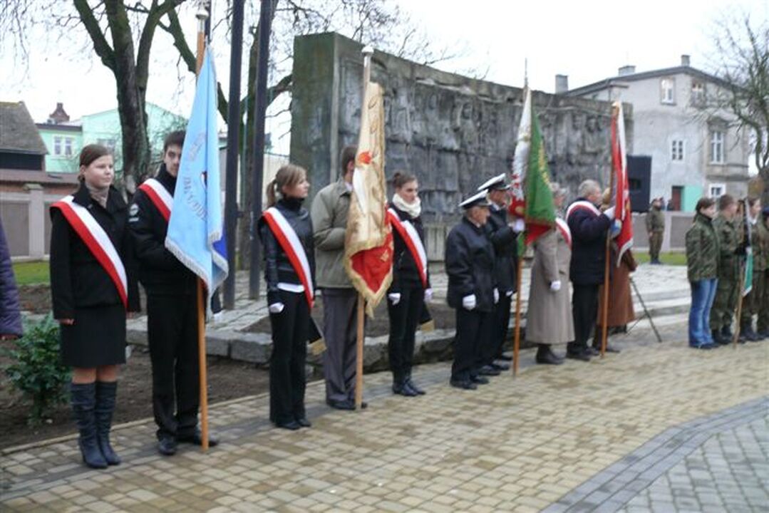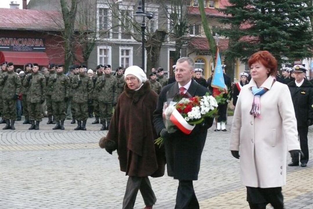 Przy zapalonym zniczu delegacje samorządów, miasta i powiatu złożyły na cokole Pomnika Tysiąclecia Państwa Polskiego w imieniu mieszkańców wiązanki kwiatów z biało - czerwonymi wstęgami. Po nich złożyli także wiązanki kwiatów przedstawiciele partii politycznych, kombatantów, harcerzy oraz wielu darłowskich instytucji i stowarzyszeń. Dalsza część tej patriotycznej uroczystości odbyła się w kinie „Bajka", gdzie odbył się koncert okolicznościowy przygotowany przez Darłowski Ośrodek Kultury.