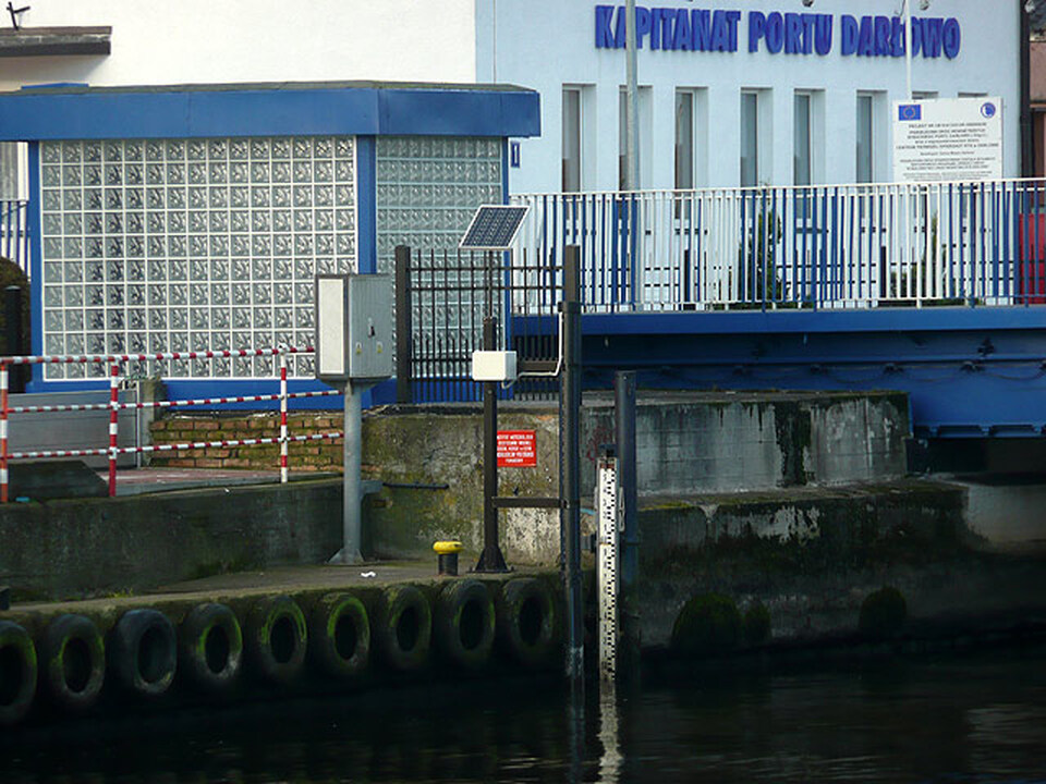 Na zdjęciu: Wodowskaz w darłowskim porcie.