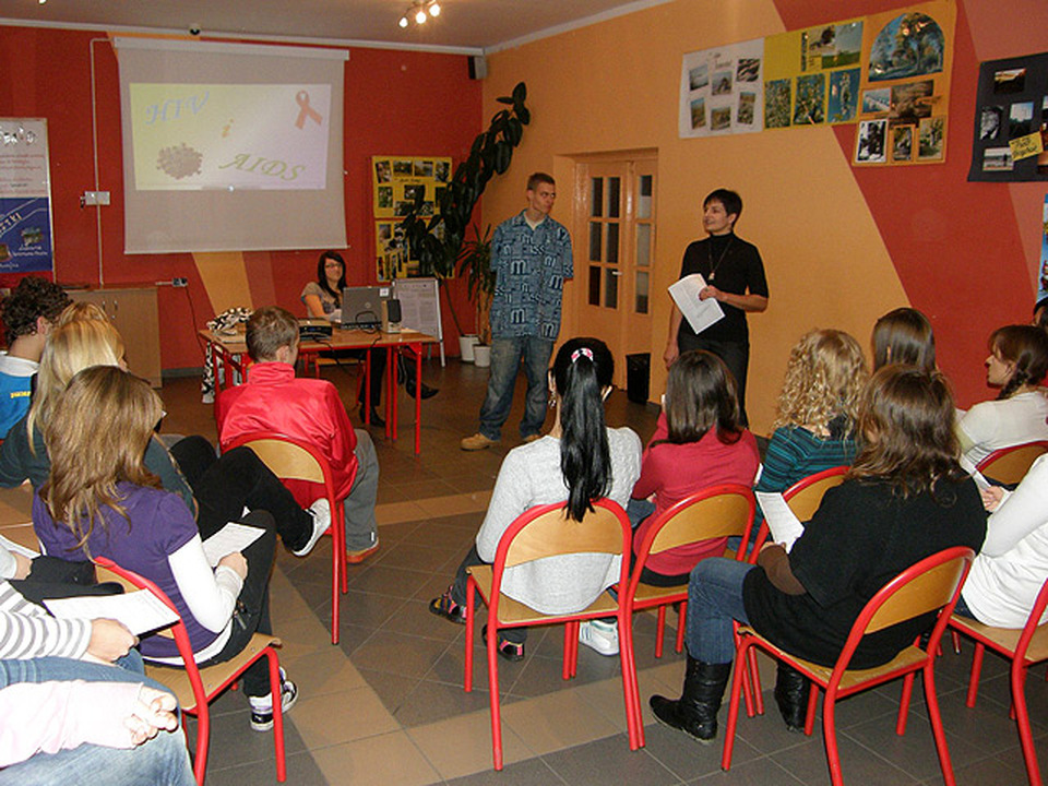 Uczennice klasy I c Sandra Kaźmierczyk i Katarzyna Rzezinowska wykonały oraz zaprezentowały plakaty i ulotki dotyczące tej problematyki.  Młodzież uczestniczyła w warsztatach, które prowadzili uczniowie klasy I a Honorata Wićko i Marcin Przybysz. Celem zajęć było przekazanie młodym ludziom podstawowej wiedzy na temat wirusa HIV i choroby AIDS, w jaki sposób może dojść do zakażenia, a w jakich sytuacjach nie istnieje ryzyko zakażenia wirusem. Wiedza ta pozwoli młodzieży odpowiedzialnie podejmować decyzje i dokonywać mądrych wyborów.