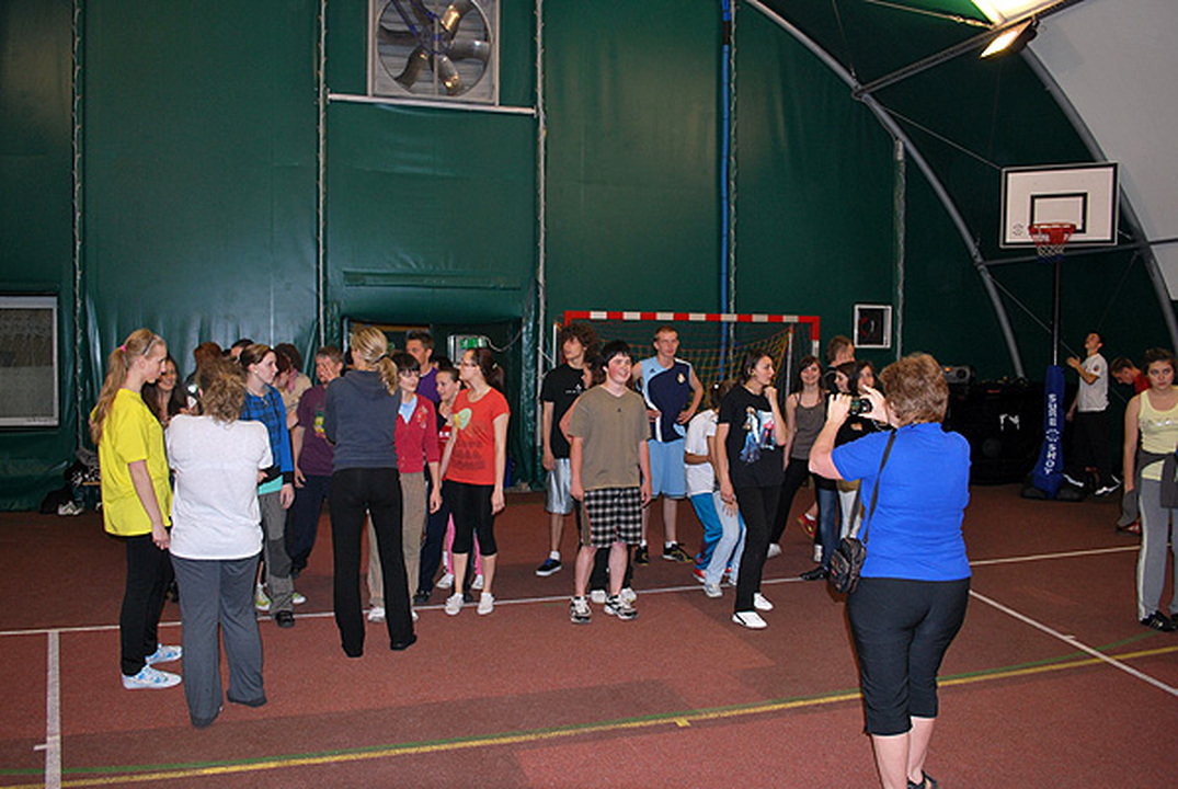 Pierwszy dzień przywitał naszych przyjaciół piękną pogodą, która utrzymała się przez cały czas pobytu. Goście odwiedzili nasze Liceum, spotkali się z uczniami i uczestniczyli w lekcji języka polskiego. Każdy otrzymał mini słowniczek polsko- angielski z podstawowymi zwrotami pomocnymi przy pobycie w naszym kraju. Następnie zwiedzili Muzeum i poznali zabytki naszego miasta, po czym cała grupa popłynęła tramwajem wodnym do Darłówka. Wieczorem w hali sportowej były różnego rodzaju zawody i konkursy, w których brała udział i młodzież i ich opiekunowie.