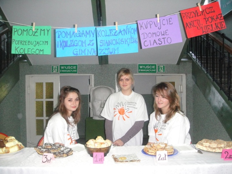 Uczniowie klasy III c Maciek Natkański, Adam Hryckiewicz i Piotr Piasecki zaprezentowali kilka skeczy; natomiast Aleksandra Mleczak i Ania Czekierda zaśpiewały piosenki znanych wykonawców we własnej aranżacji. Ponadto uczniowie i nauczyciele mogli spróbować słodkich wypieków uczennic liceum. Całą akcję przygotował i przeprowadził Samorząd Uczniowski wraz z wolontariuszami, pod opieką pani Joanny Witkowskiej.