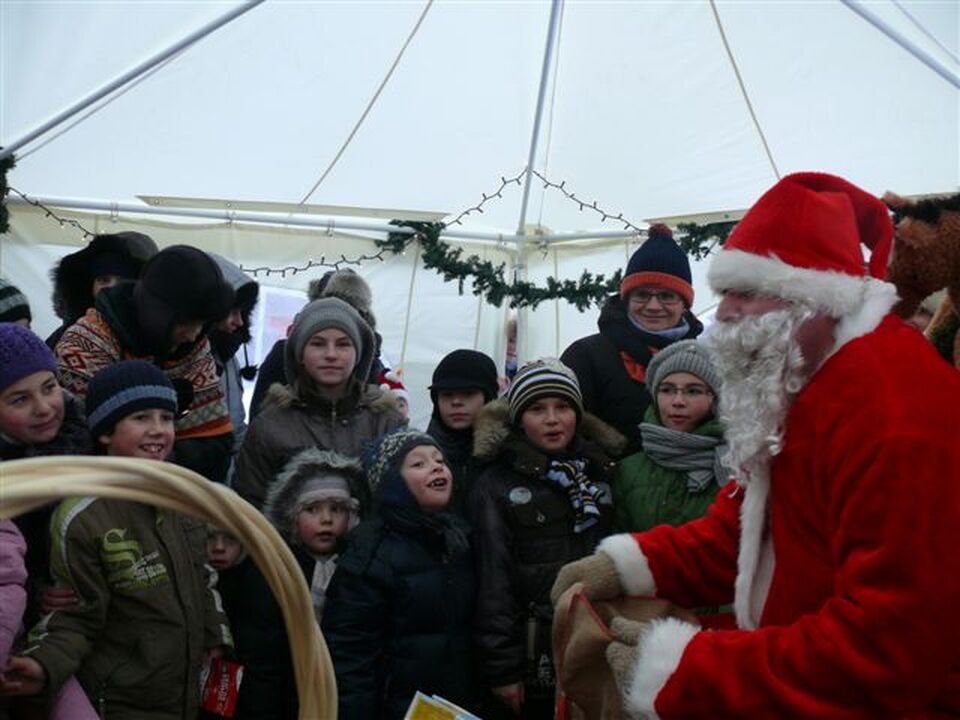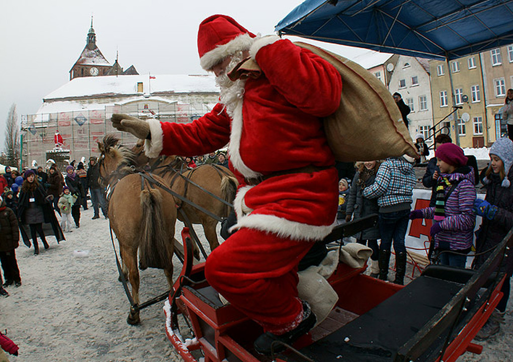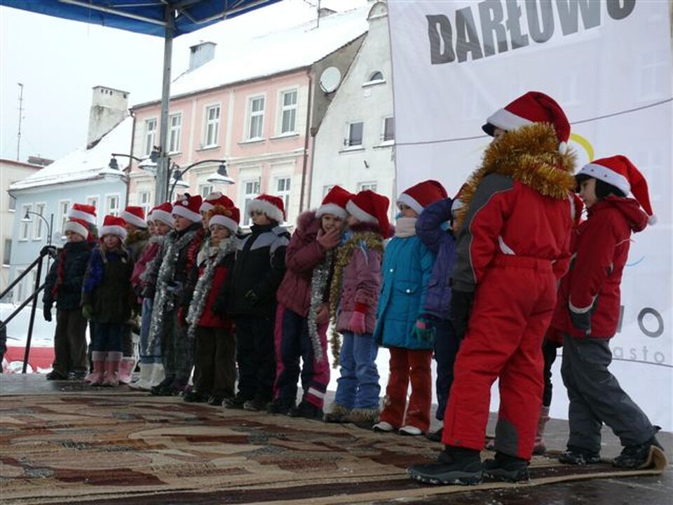W połowie kiermaszu pod scenę przybył entuzjastycznie witany przez dzieci i elfów Św. Mikołaj z Rovaniemi w Laponii. Pod ratusz dotarł wspaniałymi saniami. Zmęczone przedzieraniem się przez zaspy renifery zawróciły do Laponii, a w Polsce zastąpiły ich konie. Szacowny gość z Laponii rozdawał dzieciom z wielkiego wora przywiezione upominki. Następnie kolejno występowały na scenie: tercet w składzie Patrycja Szafraniec, Patrycja Szymczewska i Marta Grobelna z repertuarem Natalii Kukulskiej, grupy dziecięce z Przedszkoli Nr 1,2 i 3. Po nich koncertowała młodzież z Zespołu Szkół Morskich. Osobno prezentowało swoje niedoścignione umiejętności muzyczne „Świąteczne Reggae Studio".