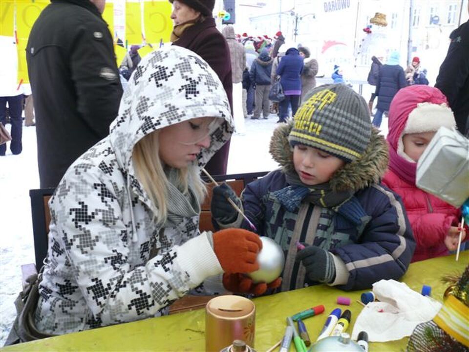 Rynek został zapełniony stoiskami ze świątecznymi ozdobami wykonanymi przez wolontariuszy i opanowany przez zastępy dziecięcych ulubieńców w czerwonych czapkach. Podczas kiermaszu można było wykonać własnoręcznie świąteczne ozdoby, przygotować stroik świąteczny, napisać list do Mikołaja, zrobić kartkę świąteczną, pomalować własną bombkę, czy spróbować świątecznych wypieków. W ramach Elfowej Poczty dzieci pisały i ozdabiały listy i kartki świąteczne z życzeniami, co chciałyby otrzymać od św. Mikołaja. Na kilku stoiskach dzieci przygotowywały świąteczne stroiki, malowały choinkowe bombki.