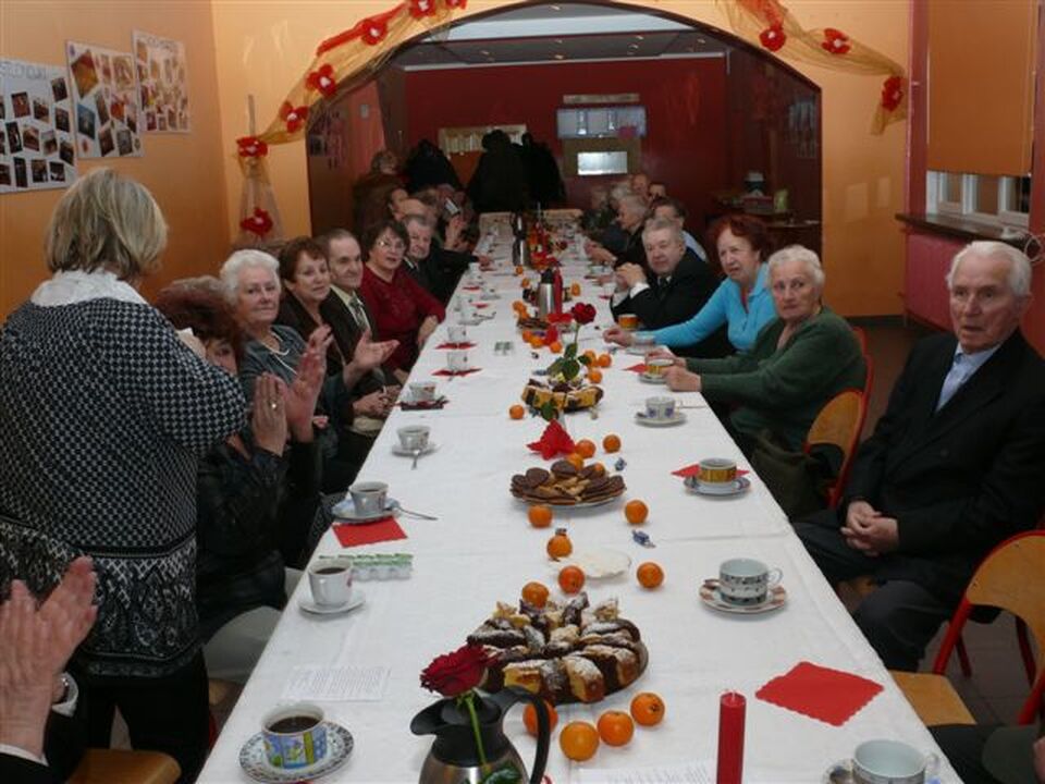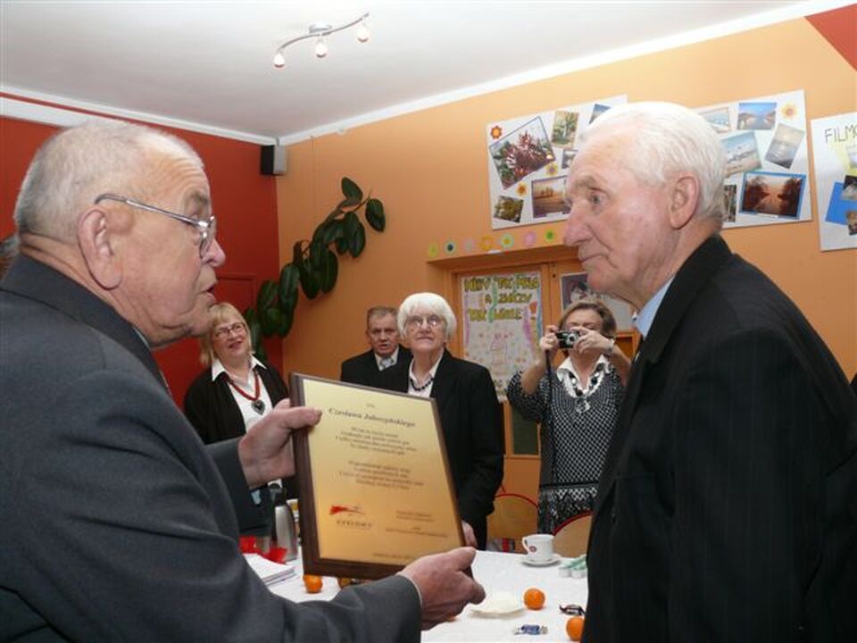Specjalne życzenia, gratulacje i pozdrowienia otrzymał od Arkadiusza Klimowicza - Czesław Jałoszyński, który kilka dni wcześniej ukończył 90 lat. Potem śpiewano kolędy. Organizatorzy rozdali przybyłym śpiewniki i dalej wspólnie śpiewano piosenki biesiadne. Przy świecach, choince, kawie, dobrym cieście, owocach i lampce szampana wspominano dawne trudne i zarazem ciekawe czasy. Minął już jedenasty rok działania Klubu Ma on spory dorobek. Na placu Marszałka Józefa Piłsudskiego pionierzy ustawili granitowy obelisk i wmurowali tablicę z brązu upamiętniająca ich wkład w rozwój Darłowa. Pionierzy ze swoim sztandarem zawsze biorą udział we wszystkich uroczystościach państwowych i regionalnych.