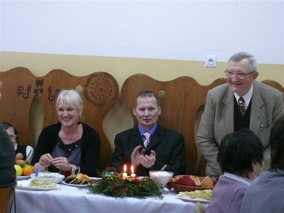 Zebrani wysłuchali fragmentu Ewangelii wygłoszonej przez o. Stefana, który 40 lat temu był proboszczem darłowskiej parafii. Patrzmy na otaczającą nas rzeczywistość sercem, widząc sercem można więcej zobaczyć niż patrząc oczyma - mówił franciszkanin. Następnie wszyscy podzielili się opłatkiem składając ciepłe życzenia. Ogółem na to uroczyste spotkanie przybyło 50 niewidomych i kilku opiekunów. Przybyli na opłatek goście złożyli niewidomym serdeczne życzenia noworoczne życząc przede wszystkim zdrowia, radości i dobrego samopoczucia. Prezes Włodzimierz Balcerzak gorąco powitał Eugenię Ładyko, która wczoraj ukończyła 99 lat. Znana w Darłowie poetka Waleria Kaczkowska złożyła jej rymowane okolicznościowe życzenia. Potem zaśpiewano jubilatce sto, a niektórzy życzyli dwieście lat.