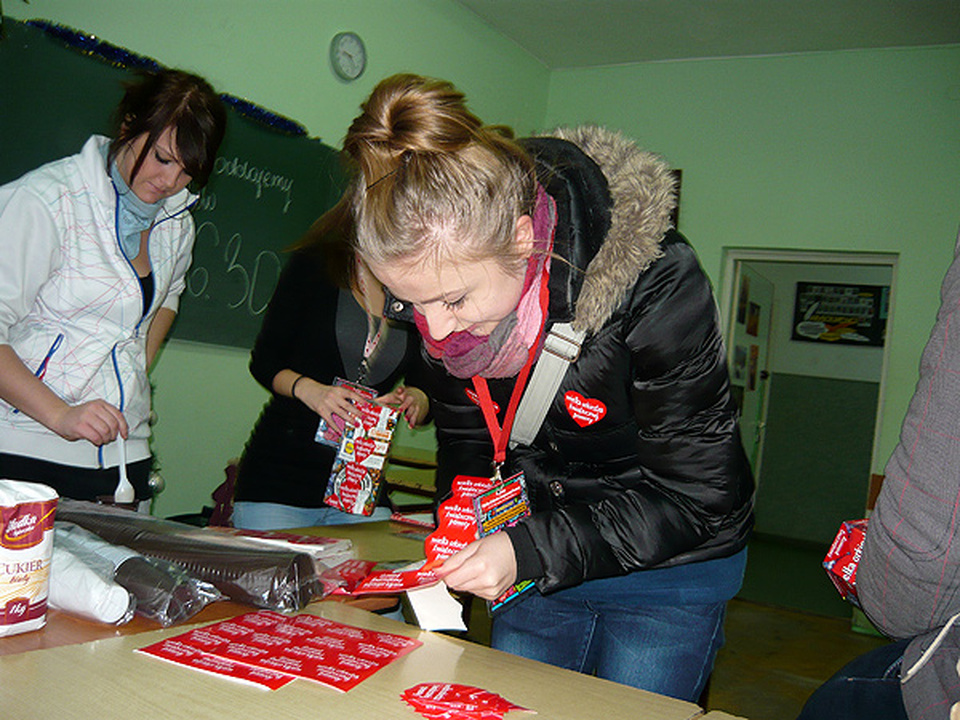 Sztab działający w darłowskim LO liczył 54 wolontariuszy, którzy zbierali pieniądze od godziny 9.00 do 16.30 na sprzęt dla dzieci z chorobami nefrologicznymi. Później pojawili się z puszkami w kinie "Bajka", gdzie dziewczęta z II c zorganizowały loterię. W przerwach miejskiej imprezy wyłaniającej talenty, trwały licytacje prowadzone przez dyrektora LO p. Bogdana Herbecia i dyrektora SP nr 3 p. Andrzeja Protasewicza.