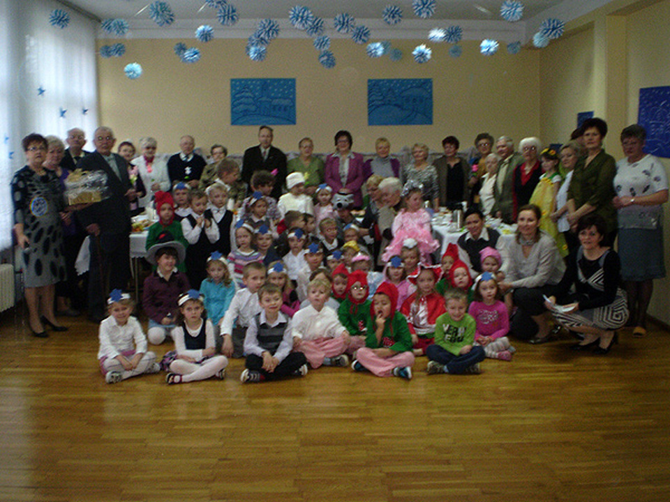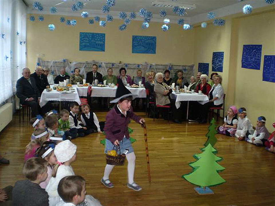 Dnia 12 stycznia 2011 roku Przedszkole Nr 2 im. Janiny Porazińskiej w Darłowie miało zaszyt gościć u siebie człoków Klubu Pionierów Ziemi Darłowskiej, Związku Emerytów, Rencistów i Inwalidów oraz Klubu Seniora ,,Nadzieja Złotego Wieku". Dzieci z grupy III i IV pod kierunkiem wychowawczyń - Pani Joanny Waliszewskiej, Joanny Stefaniak, Marioli Lewko i Haliny Rokickiej przygotowały dla zacnych gości program jasełkowy utrzymany w konwencji bajkowej. Program w wykonaniu małych artystów bardzo podobał się Seniorom i nagradzany był brawami. Dyrektor przedszkola Pani Barbara Zalewska złożyła zaproszonym gościom serdeczne życzenia. W podziekowaniu za zaproszenie i przepięknie wykonany program goście obdarowali dzieci słodyczami, życzyli wszystkim zdrowia, radości oraz aby dzieci miały szansę rozwijać swoje talenty w przyszłości. Po części artystycznej odbyło się spotkanie gości z dyrektorem i nauczycilkami przedszkola przy kawie i cieście.