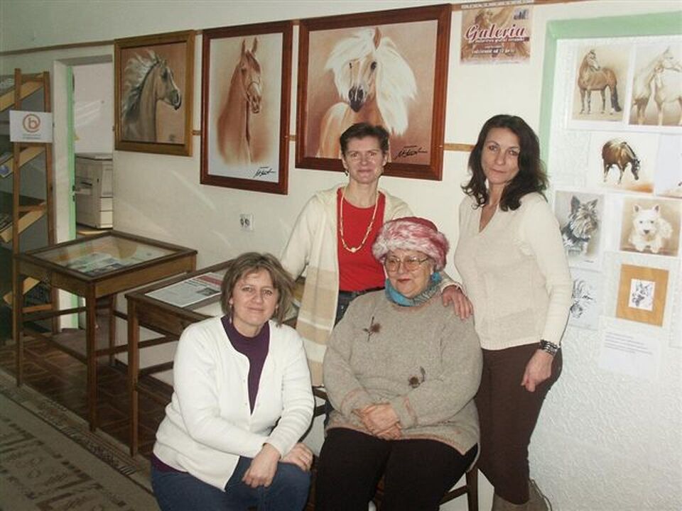 Mój przyjaciel. Tak zagadkowo zatytułowała autorka swą wystawę. Kto nim jest? Kim są bohaterowie obrazów pani Uli? Są to... zwierzęta. Głównie - konie. Ktoś nazwał panią Urszulę Kossakiem w spódnicy. Chyba trafnie, bo konie są jej umiłowanym tematem. Każdego fotografuje. Nawet, te pociągowe na targowisku miejskim... Przez życie przechodzi z lustrzanką w torebce i fotografuje to, co ją zauroczy. A konie - zawsze! Potem, na podstawie zdjęć, rysuje, maluje, rzeźbi, tworzy ceramikę... Kiedy zapytałam artystkę, skąd ta miłość do koni?, odpowiedziała, że z internetu. Jeszcze będąc w Anglii zobaczyła w internecie Dom Spokojnej Starości dla Koni pod Wrocławiem. W Domu tym, dzięki akcjom charytatywnym, mieszkają zwierzęta uchronione przed rzezią. Wrażliwa na ich los pani Ula, od tamtej pory rozkochała się w tych pięknych i biednych zwierzętach... Maluje je i wspomaga.