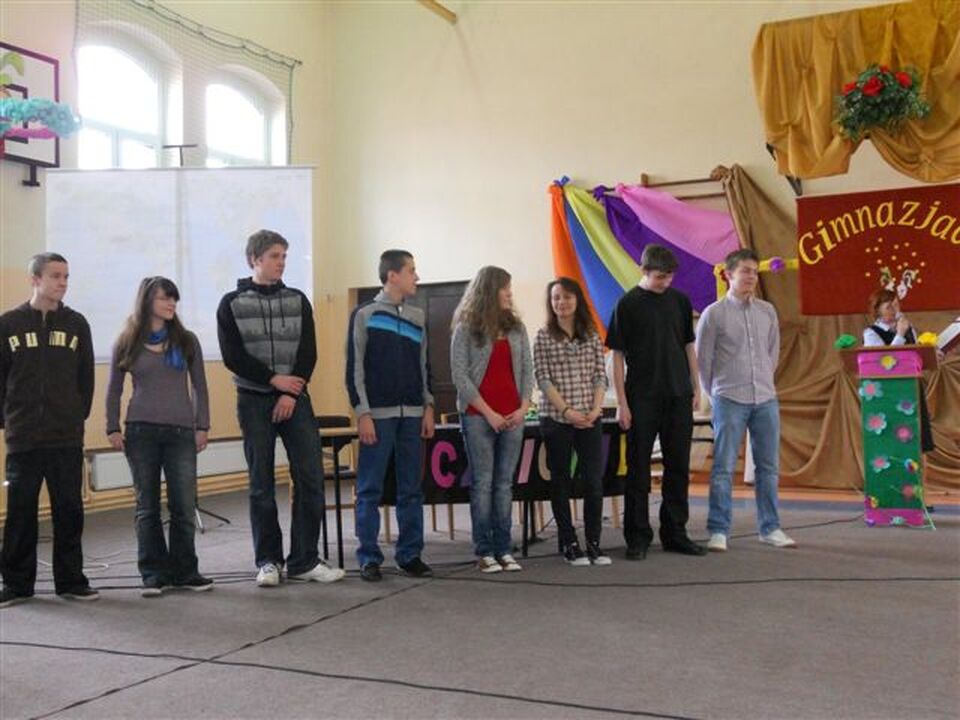 W konkursie wzięły udział dwie drużyny: Uczniowie - Nauczyciele. Współzawodnictwo było zacięte. Nauczyciele zaskoczyli wszystkich nie tylko swą wiedzą i elokwencją, ale również ciekawą charakteryzacją, strojem i hasłami: