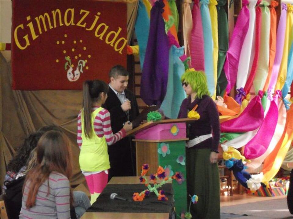 Po zakończeniu tej części apelu aktyw Samorządu Uczniowskiego, pod nadzorem opiekuna S.U. Pani Krystyny Leśniewskiej, zorganizował „Gimnazjadę" - zabawę opartą na zasadach znanego programu telewizyjnego emitowanego na kanale TVP 2 - „Familiady".