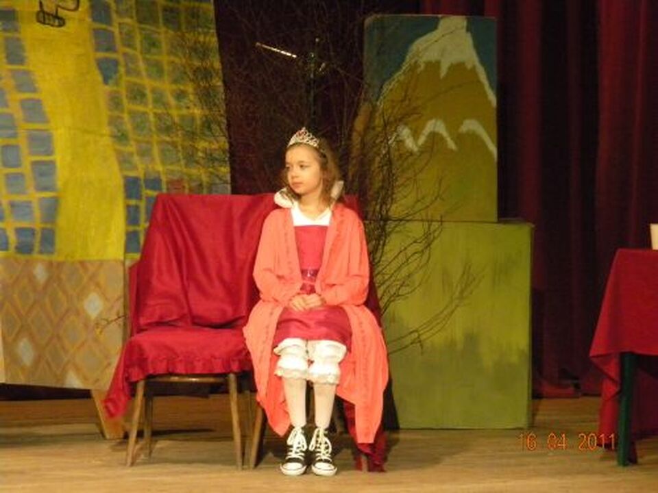 Sztuka pt. "Książę szuka żony" na motywach baśni J.Ch. Andersena przygotowana została przez wychowawczynię Marzenę Starzyńską, a scenografia przez państwa Walasek. Przedstawienie ukazywało losy Księcia, który wśród bajkowych księżniczek szukał sobie żony, ale niestety żadna mu nie pasowała...a to była zbyt żywiołowa, a to była za dumna, albo ...zbyt pachniała groszkiem. Wreszcie Książę znalazł swoją miłość - malutką i skromną Calineczkę, która swoją urodą i wdziękiem oczarowała cały dwór. Sławieńska publiczność wspaniale bawiła się przy muzyce towarzyszącej przedstawieniu. Dzieci, jak zawsze mogły liczyć na pomoc swoich rodziców, którzy nie zawiedli i pomogli młodym aktorom zaprojektować swoje kostiumy. Jesteśmy pełni nadziei i liczymy na dalsze sukcesy!