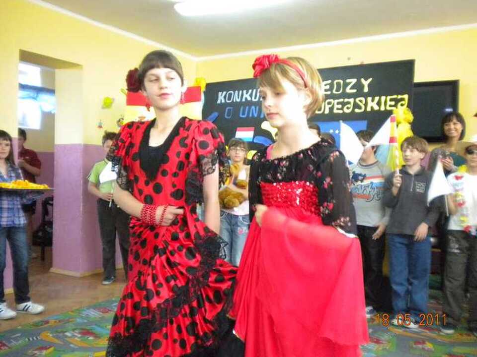 Wykazały się dużą pomysłowością, zaangażowaniem i inwencją. Komisja w składzie: dyrektor Andrzej Protasewicz, nauczyciel sztuki Marzena Wolska i nauczyciel języka angielskiego Anna Kosiorek oceniali występ artystyczny, album i flagi wykonane przez każdą z klas. I miejsce zajęła klasa IV e (wych. Artur Śmiech), dzięki której na chwil parę można było się przenieść do słonecznej Hiszpanii. Flamenco, corrida, Majorka, a także smak pomarańczy, którymi poczęstowano publiczność pozwoliły odczuć klimat i atmosferę tego pięknego kraju. Na  II miejsce zasłużyła klasa IV b (wych. Agnieszka Nowak- Pawlicka), która zaprezentowała Włochy, jako kraj pizzy, spagetti, pięknych i bardzo starych zabytków oraz ciekawych turystycznie miast. III miejsce przypadło w udziale klasie III c(wych. Dorota Krajczyńska - Gruba) za przybliżenie Wielkiej Brytanii. Szkot zaprezentował się w swym oryginalnym kitlu, książę William poślubił Kate w otoczeniu licznie przybyłych księżniczek. Na koniec klasa zaśpiewał piosenkę w języku angielskim, którego uczy się w szkole. IV miejsce zajęły klasy: IV c (wych. Barbara Kalinowska) prezentująca Francję i IV d (wych. Beata Żmuda) prezentująca Holandię. Niemcy pokazała klasa IV a (wych. Małgorzata Marek) i ona zajęła V miejsce.