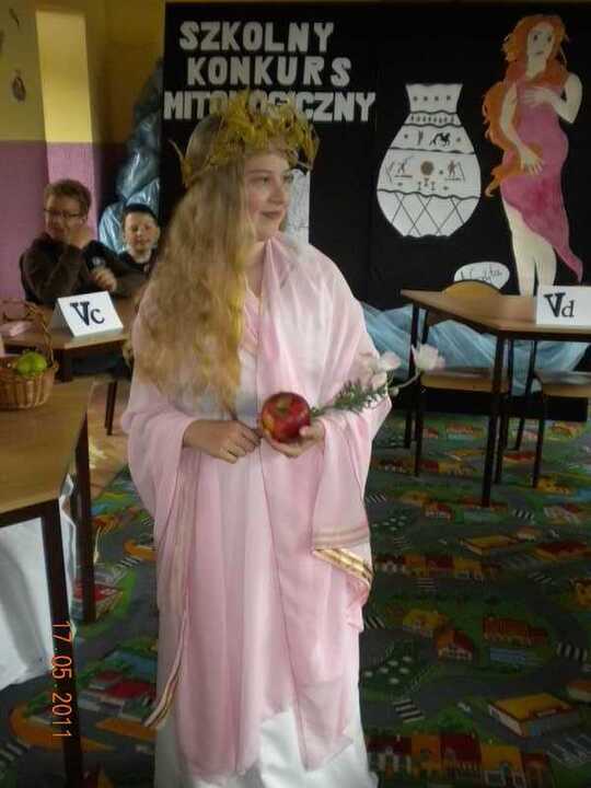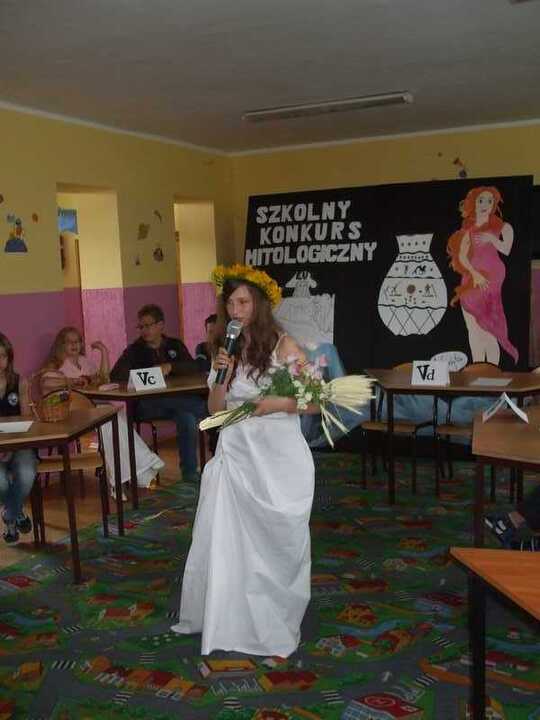 W pierwszej części przedstawiciele poszczególnych klas wystąpili przebrani za dowolną postać mitologiczną , prezentując ją. Wszystkie stroje były dopracowane i starannie wykonane. Ocenie podlegała prezentacja postaci (strój, rekwizyty, pomysłowość) oraz samo wystąpienie m.in. płynność i oryginalność wypowiedzi.