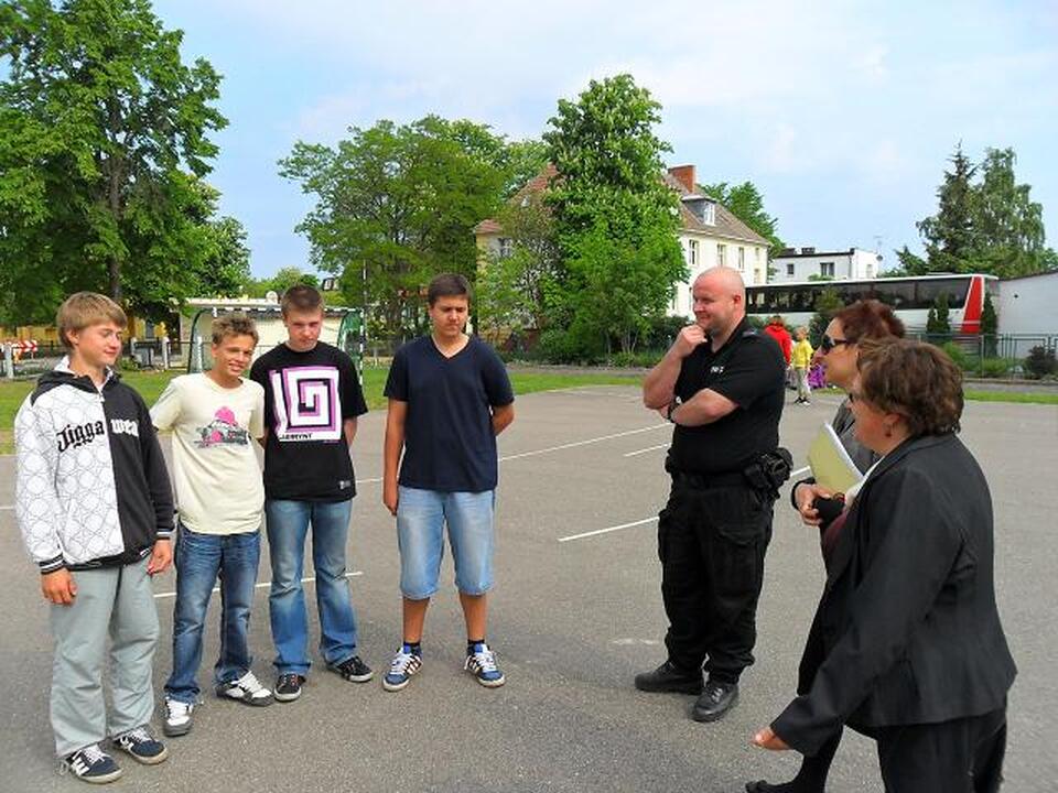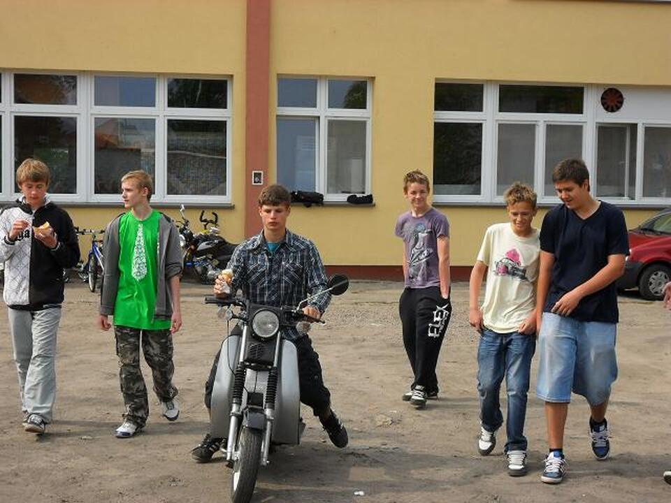 Do egzaminu praktycznego przystąpili też uczniowie gimnazjum. Trzech gimnazjalistów pomyślnie zdało egzamin na kartę motorowerową. Egzamin odbierał funkcjonariusz Policji Michał Koński.