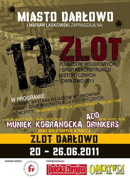 Dokładnie 20 czerwca 2011 w nadbałtyckim Darłowie rozpocznie się największa militarna impreza w Polsce - Zlot 13 - Zlot Pojazdów Wojskowych i Grup Rekonstrukcji Historycznych. Nie zabraknie warkotu sprzętów gąsienicowych, wycia syren, rekonstrukcji grup historycznych, wystawy pojazdów wojskowych, „żołnierzy" z różnych stron świata, dioram i dobrej muzyki.