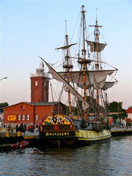 Każdego dnia w porcie Darłowo w przy kontenerowej przystani żeglarskiej cumuje kilkanaście jachtów różnych bander. Niedawno do Darłowa zawinęła na krótko rosyjska fregata Schtandart.