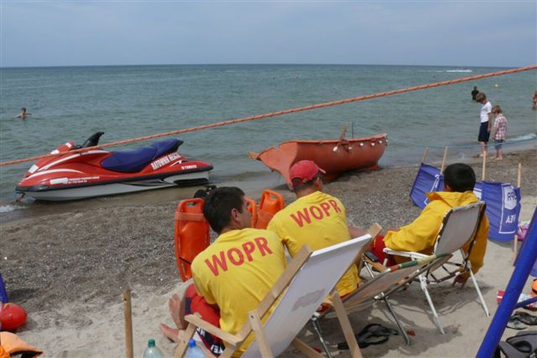 Niezależnie od słupków na darłowskich plażach strzeżonych dyżurują grupy doświadczonych ratowników WOPR wyposażonych w łodzie i skutery ratunkowe gotowych w każdej chwili udzielić pomocy potrzebującym.