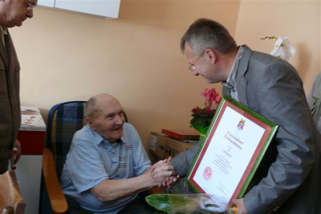 W poniedziałek 25 lipca Arkadiusz Klimowicz - burmistrz miasta Darłowo odwiedził w jego domu obchodzącego 95 rocznicę urodzin Franciszka Paćkowskiego - kombatanta RP wyróżnionego Medalem Zasłużonego dla Miasta Darłowo.