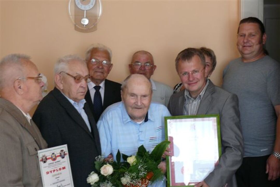Dostojnemu Jubilatowi wręczył okolicznościowy list gratulacyjny, kwiaty i złożył najlepsze życzenia pomyślności i zdrowia Arkadiusz Klimowicz burmistrz miasta Darłowo. W spotkaniu udział wzięli przewodniczący koła Związku Kombatantów RP i Byłych Więźniów Politycznych Kazimierz Kuligowski, prezes Klubu Pionierów Ziemi Darłowskiej Eugeniusz Wójcik oraz koledzy z pracy.