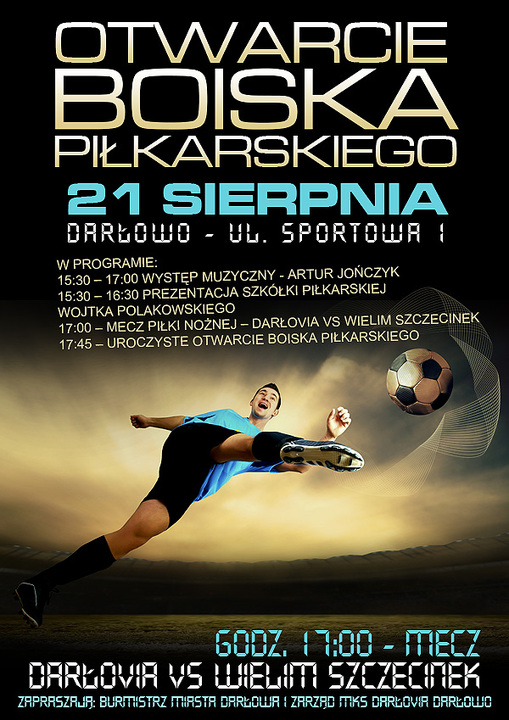 Burmistrz Darłowa oraz Zarząd MKS Darłovia Darłowo serdecznie zapraszają na uroczyste Otwarcie Boiska Piłkarskiego, które odbędzie się w Darłowie przy ul. Sportowej 1 w dniu 21 sierpnia 2011 roku o godzinie 17:45.