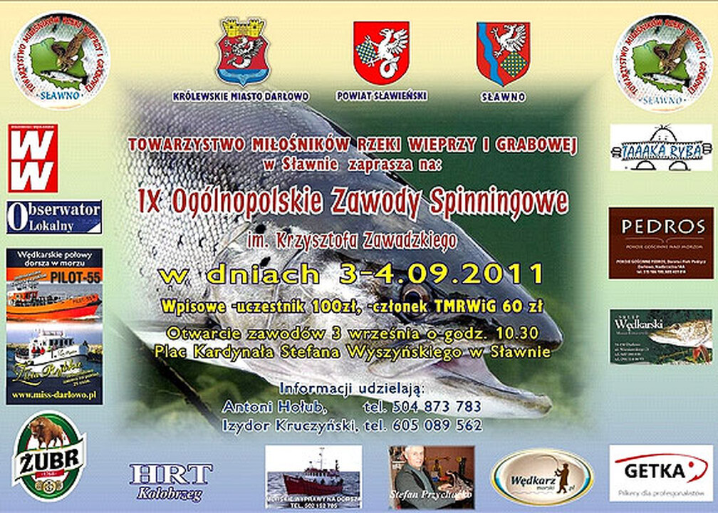 W dniach 3-4 września pod patronatem posła ziemi koszalińskiej Wiesława Suchowiejko  na rzece Wieprzy i Grabowej odbędą się IX Otwarte Ogólnopolskie Zawody Spinningowe „Święto Wieprzy i Grabowej 2011" im. Krzysztofa Zawadzkiego. Terenem zawodów będzie rzeka Wieprza od Kępic do Darłowa i rzeka Grabowa. W tym roku organizator jakim jest Towarzystwo Miłośników Rzeki Wieprzy i Grabowej wraz z PZW oraz starostwem powiatowym w Sławnie dopuszczają możliwość spinningowania z plaż Morza Bałtyckiego. Rejestracja zawodników i następne otwarcie zawodów nastąpi w Sławnie na Placu Kardynała Stefana Wyszyńskiego koło kościoła p.w. WNMP o godz. 10.30. Zakończenie I tury zawodów, powrót z łowiska i zgłaszanie ryb nastąpi na terenie nadleśnictwa Sławno w Pomiłowie w godz. 18-18.15. W niedzielę 4 września wyjście na łowiska nastąpi o godz. 8.30. Zakończenie II tury odbędzie się o godz.14.  W klasyfikacji indywidualnej liczyć się będzie suma wagi ryb z obu tur zawodów. Zakończenie zawodów wręczenie pucharów, dyplomów i nagród rzeczowych  nastąpi o godz.16 w Pomiłowie.