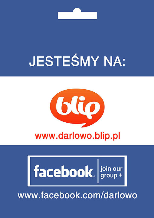 Na darłowskie profile społecznościowe możesz trafić na skróty poprzez kliknięcie ikon blip lub facebook, które znajdują się w górnej części strony www.darlowo.pl
