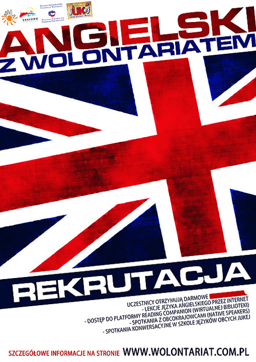 "ANGIELSKI Z WOLONTARIATEM" to tytuł projektu jaki rozpoczyna realizację Darłowskie Centrum Wolontariatu przy współpracy ze Szkołą Języków Obcych jUKej.