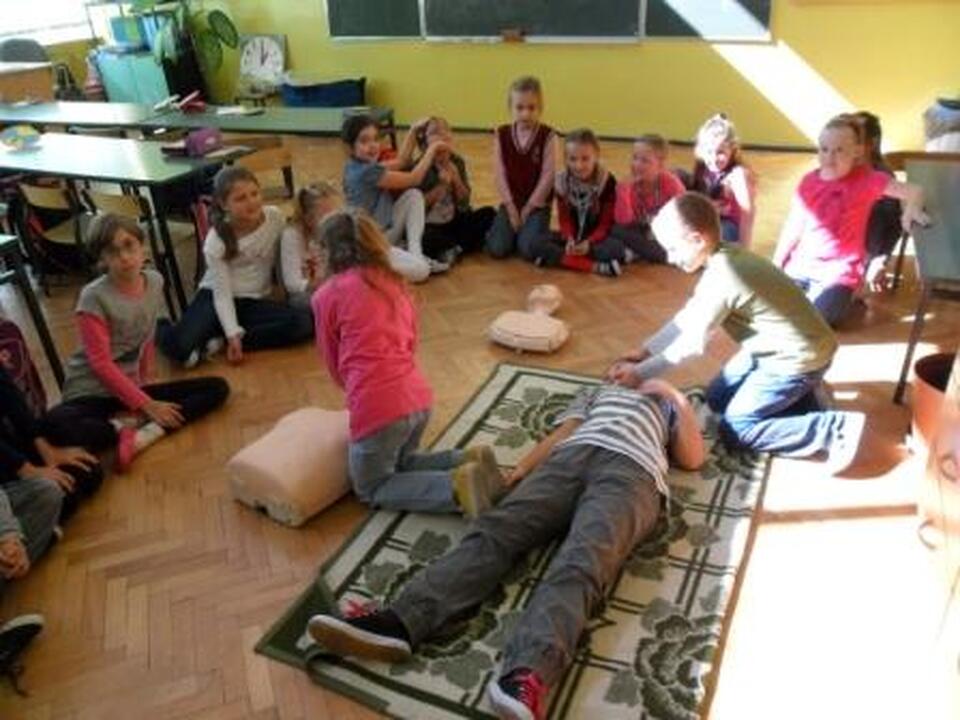 Program swym zakresem obejmuje tematy bezpieczeństwa, sprawdzania przytomności, wzywanie pomocy, sprawdzanie oddechu, ułożenie nieprzytomnego w pozycji bocznej, oddechy ratownicze i uciskanie w pozycji bocznej, łańcuch przeżyć. Uczymy dzieci naszej szkoły pomocy przez telefon po najprostsze czynności przy osobie poszkodowanej. Uczniowie mają możliwość ćwiczenia na manekinach, które otrzymaliśmy od WOŚP. Zajęcia są prowadzone w formie zabawy, dlatego cieszą się dużym zainteresowaniem. Dzieci bardzo aktywnie uczestniczą w spotkaniach i potrafią wykazać się zdobytą wiedzą i ją zastosować w praktyce. Pierwsza pomoc to bardzo niezbędna umiejętność i znajomość jej przyda się każdemu.