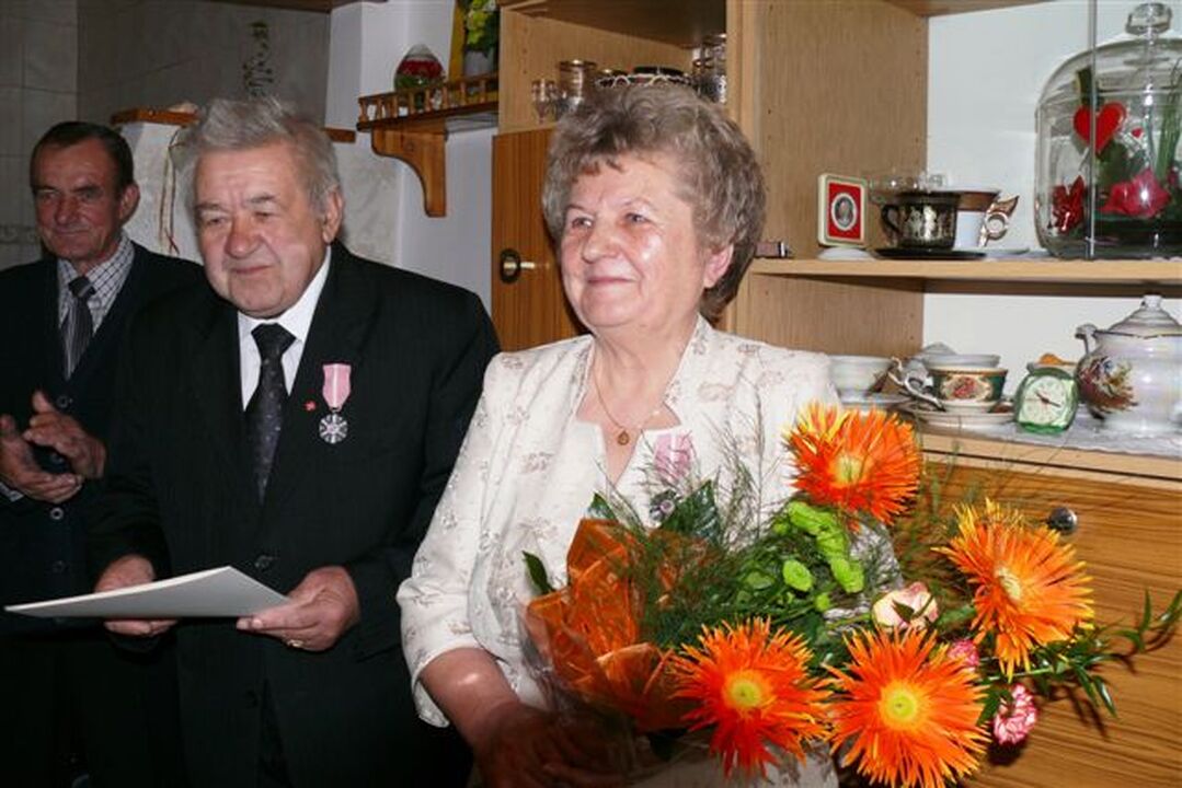 Z tej okazji Arkadiusz Klimowicz - burmistrz miasta Darłowo w asyście Haliny Gałuszka -kierownika Urzędu Stanu Cywilnego odwiedzili jubilatów i złożyli im życzenia, kwiaty i gratulacje. Burmistrz w imieniu Prezydenta RP odznaczył oboje medalami Za Długoletnie Pożycie Małżeńskie oraz złożył dostojnym jubilatom serdeczne życzenia jeszcze długich lat w zdrowiu i szczęściu.
