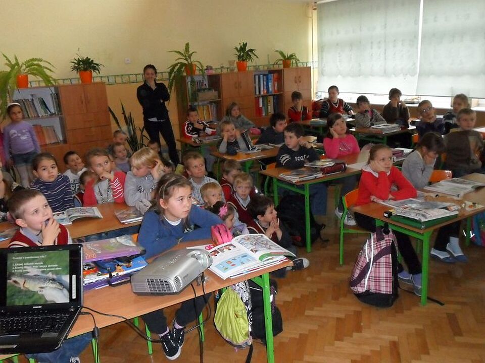 3 listopada 2011 roku gościliśmy w naszej szkole Pana Michała Skórę, który jest pracownikiem Zakładu Ryb Wędrownych przy Instytucie Rybactwa Śródlądowego w Gdańsku. Wszyscy uczniowie szkoły począwszy od pierwszej klasy szkoły podstawowej, a skończywszy na trzeciej klasie gimnazjum wysłuchali interesującego wykładu połączonego z prezentacją multimedialną na temat badań ryb wędrownych, a w szczególności troci i łososi. Uczniowie dowiedzieli się dlaczego i w jaki sposób znakuje się ryby oraz jakie wykorzystuje się w badaniach metody. Podsumowaniem wykładu było ogłoszenie przez prowadzącego dwóch konkursów, skierowanych do wszystkich uczniów. Pierwszy z nich polega na odnalezieniu wśród znajomych wędkarzy lub rybaków znaczków pochodzących od znakowanych ryb przez pracowników Zakładu Ryb Wędrownych. Do znaczka należy dołączyć w miarę możliwości pełny opis złowionej ryby (długość całkowita, masa ryby) i okoliczności połowu (data i miejsce połowu, pozycja geograficzna, łowisko), rodzaj narzędzia połowowego oraz w miarę możliwości łusek w przypadku ryb łososiowatych). Drugi konkurs dotyczy zaprojektowania dowolną techniką plastyczną znaczka służącego do znakowania ryb. Laureatów obu konkursów czekają atrakcyjne nagrody rzeczowe, a rozstrzygnięcie konkursu i wręczenie nagród nastąpi 18 listopada 2011 r. Życzymy wszystkim uczniom powodzenia w obu konkursach!