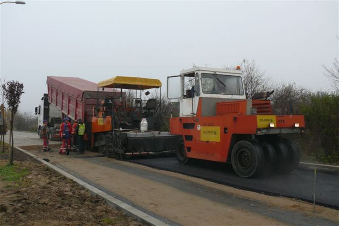 Asfalt kładzie firma POL- DRÓG Gdańsk, która jest podwykonawcą Przedsiębiorstwa Robót Inżynieryjno Drogowych KRĘŻEL z Kobylnicy.