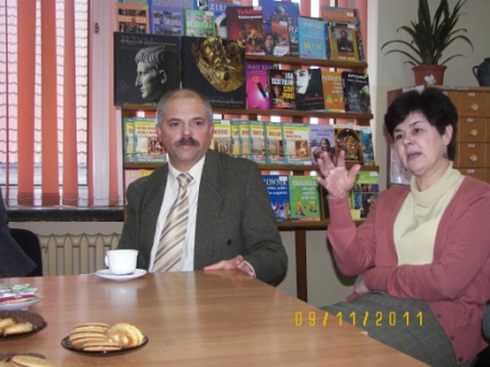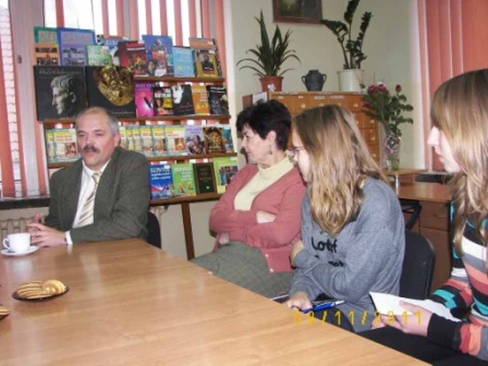 W środę 9 listopada 2011 roku w Miejskim Gimnazjum im. Stanisława Dulewicza w Darłowie członkowie koła bibliotecznego i dziennikarskiego spotkali się z kierownikiem referatu oświaty i spraw społecznych w Urzędzie Miejskim dr Zbigniewem Mielczarskim. W spotkaniu uczestniczyły również opiekunki szkolnego koła, pani Angelika Kuriata i pani Adela Janiczak oraz pani dyrektor Małgorzata Świątkowska. Uczniowie przeprowadzili wywiad do szkolnej gazetki, w którym Zbigniew Mielczarski mówił o swoich wspomnieniach związanych z Darłowem, pracy w urzędzie, współtworzeniu przewodnika „Ziemia Sławieńska", swoich zainteresowaniach i pasjach. Pan Mielczarski, jako sekretarz Towarzystwa Przyjaciół Ziemi Darłowskiej, opowiedział nam o działaniu i funkcjonowaniu tego stowarzyszenia. Zdradził nam również historię tworzenia swojej pracy doktorskiej, którą obronił i zyskał tytuł doktora. Wywiad przebiegł w bardzo miłej atmosferze. W ramach podziękowań pani dyrektor wręczyła naszemu gościowi skromny upominek - budzik z logiem naszej szkoły. Żegnając pana Zbigniewa wyraziliśmy chęć następnego spotkania. Mamy nadzieję, że nastąpi ono jak najszybciej.