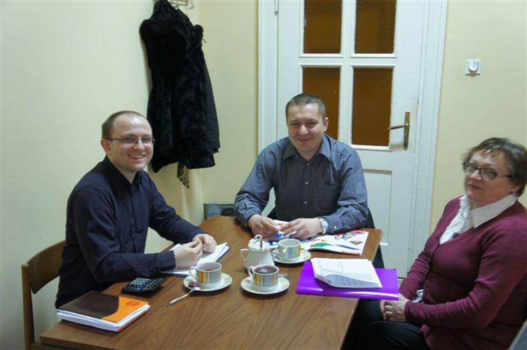 Na zdjęciu: robocze spotkanie w sprawie przystąpienia do Programu z udziałem przewodniczącej zespołu diagnozującego ze Szkoły Podstawowej Nr 3 p. Bożeny Tatusko, dyrektora Andrzeja Protasewicza i Pawła Mizery.