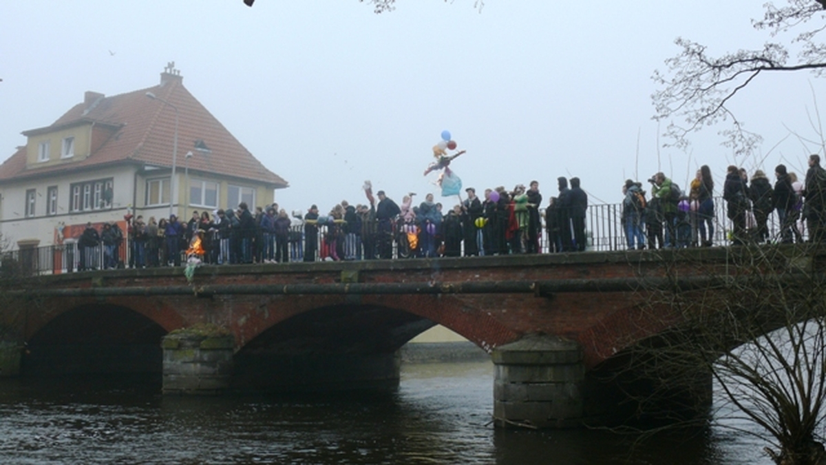 W środowym powitaniu wiosny udział wzięły przedszkolaki, uczniowie szkół  z licealistami włącznie. Wszyscy tradycyjnie przybyli na most przy Karczmie Rzymskiej, aby wziąć udział w tym dawnym obyczaju. Marzanna to słowiańska bogini symbolizująca zimę i śmierć. Na moście ostatecznie rozprawiono się z zimą i z Marzannami, których było pięć. Cztery płonące po wrzuceniu do wody popłynęły Wieprzą do morza, a jedna kukła została przy filarze mostu. Dzieciaki wesoło machały papierowymi kwiatami i wypuszczały kolorowe baloniki.