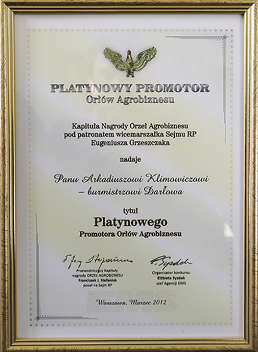 Nagroda Orzeł Agrobiznesu Grand Prix dla Bałtyckiego Banku Spółdzielczego w Darłowie. 21 marca w Domu Literatury w Warszawie odbyła się gala wręczenia nagród „Orzeł Agrobiznesu”. Z rąk przewodniczącego kapituły posła na Sejm Franciszka Jerzego Stefaniuka oraz wicemarszałka Sejmu RP Eugeniusza Grzeszczaka i minister Ewy Kierzkowskiej nagrodę Orła Agrobiznesu Grand Prix odebrał prezes banku Ryszard Mroziński.
