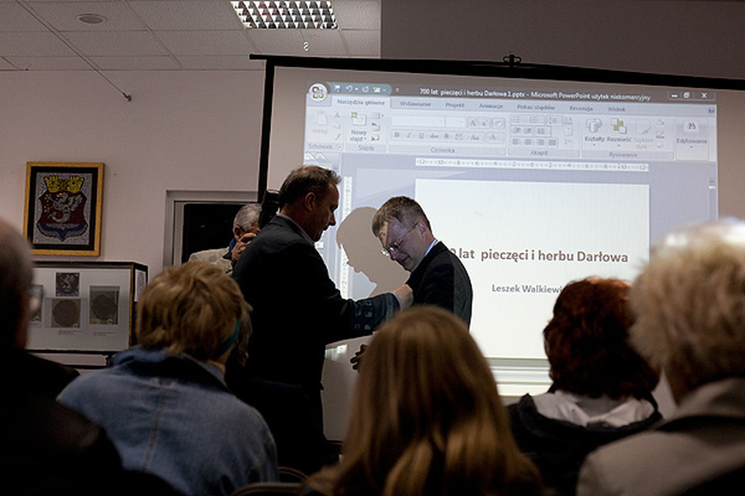Z okazji siedemsetlecia drugiej lokacji miasta Darłowo w Terminalu Sztuki 17 maja Darłowski Ośrodek Kultury i Towarzystwo Przyjaciół Ziemi Darłowskiej otworzyły wystawę Leszka Walkiewicza p.t. „Siedem wieków herbu i pieczęci Darłowa”. Zorganizowaniu wystawy przyświecały dwa cele. Pierwszym była ekspozycja pieczęci i herbu miasta Darłowo w ujęciu historycznym. Drugim jest prezentacja różnych wariantów oraz stylizacji herbu i pieczęci umieszczonych na rozmaitych przedmiotach, jaki np. na Sztandarach, folderach, medalach, dokumentach, książkach, budynkach, budowlach pomnikach, tablicach pamiątkowych, monetach i zastępczych pieniądzach papierowych, kubkach, serwetkach, planach miasta, kutrach i statkach, taksówkach, a nawet na otwieraczu do butelek, czy nożyku do rozcinania papieru. Autor wystawy na wstępie zaprezentował na ekranie genezę powstania pieczęci i herbu Darłowa pochodzących od pieczęci braci Święców Jaśka, Piotra i Wawrzyńca oraz przestawił pochodzące z archiwalnych zbiorów historyczne odmiany pieczęci i herbów. Goście odwiedzający wystawę otrzymali 52 stronicową broszurę p.t. „Siedem wieków herbu Darłowa”. Ozdobą wystawy są m.in.: mozaikowy herb Darłowa wykonany przez Annę Skrzynkowską i herb dla statku Franek Zubrzycki” wykonany przez Jerzego Świątka. Na wystawie pokazano też najlepsze prace, które wygrały Konkurs Plastyczny na Herb Darłowa. W kategorii powyżej lat 13 jury konkursu przyznało dwie nagrody główne dla: Dominiki Schań lat 13 oraz Moniki Rettmańskiej lat 13 ze SP 3. Miejsce II przyznano: Nikoli Olchawik lat 13 (wszyscy ze SP 3 w Darłowie). W kategorii od lat 9 do 13 przyznano również dwie nagrody główne dla: Filipa Kaczyńskiego lat 9 oraz Julii Brygały lat 12 oboje ze SP nr 3 w Darłowie. Miejsce II zajął herb Krystiana Zdyra lat 12 z SP 3 w Darłowie, a trzecie Patrycji Ferka lat 10 z Zespołu Szkół w Darłówku. W kategorii do lat 9 dwie nagrody główne przypadły dla: Karoliny Ziemskiej lat 8 oraz Klaudii Żółć lat 9 obie z Zespołu Szkół w Darłówku. Miejsce II zajęła praca Nadii Leppert z SP 3 w Darłowie, a miejsce III herb Łukasza Piłata lat 7. Nagrodę specjalną dyrektora Darłowskiego Ośrodka Kultury za pracę zbiorową  jury przyznało: Julii Pepińskiej lat 10; Mizumi Feicht lat 11 i Kindze Książkiewicz lat 9.