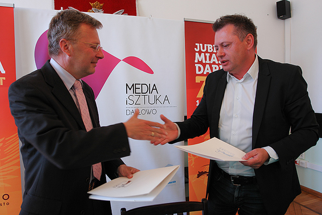 Umowę w sprawie wspólnej produkcji Bałtyckiego Festiwalu Media i Sztuka podpisali 18 czerwca w trakcie konferencji prasowej w darłowskim ratuszu prezes Radia Koszalin Piotr Ostrowski i burmistrz Darłowa Arkadiusz Klimowicz.