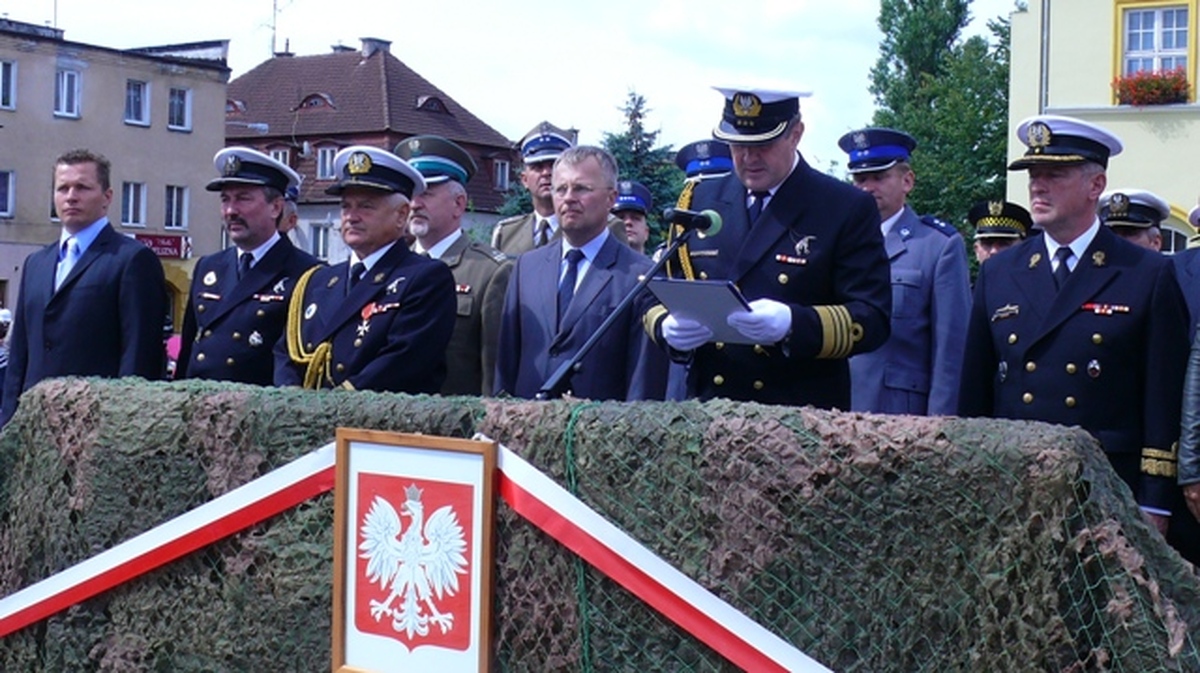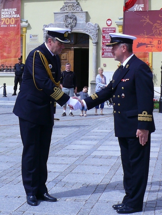 W uroczystości pięćdziesięciolecia lotnictwa morskiego w Darłowie oprócz marynarzy, lotników i służb technicznych udział wzięli: zastępca szefa szkolenia Marynarki Wojennej kontradmirał Stanisław Kania, burmistrz miasta Darłowo - Arkadiusz Klimowicz, kontradmirał pil. Zbigniew Smolarek, dowódca jednostki w Siemirowicach kmdr pil. Jarosław Andrychowski, byli dowódcy jednostek wojskowych lotnictwa morskiego, szefowie Policji, Straży Granicznej, Straży Pożarnej oraz rodziny wojskowych i liczna publiczność.          Blasku ceremonii przekazania sztandaru dodawała słupska marszowa orkiestra „Reduta” w barwnych historycznych mundurach.  Po defiladzie zrobiono na rynku pamiątkowe zdjęcie. Następnie wszyscy udali się nad morze na pokaz lotniczy.
