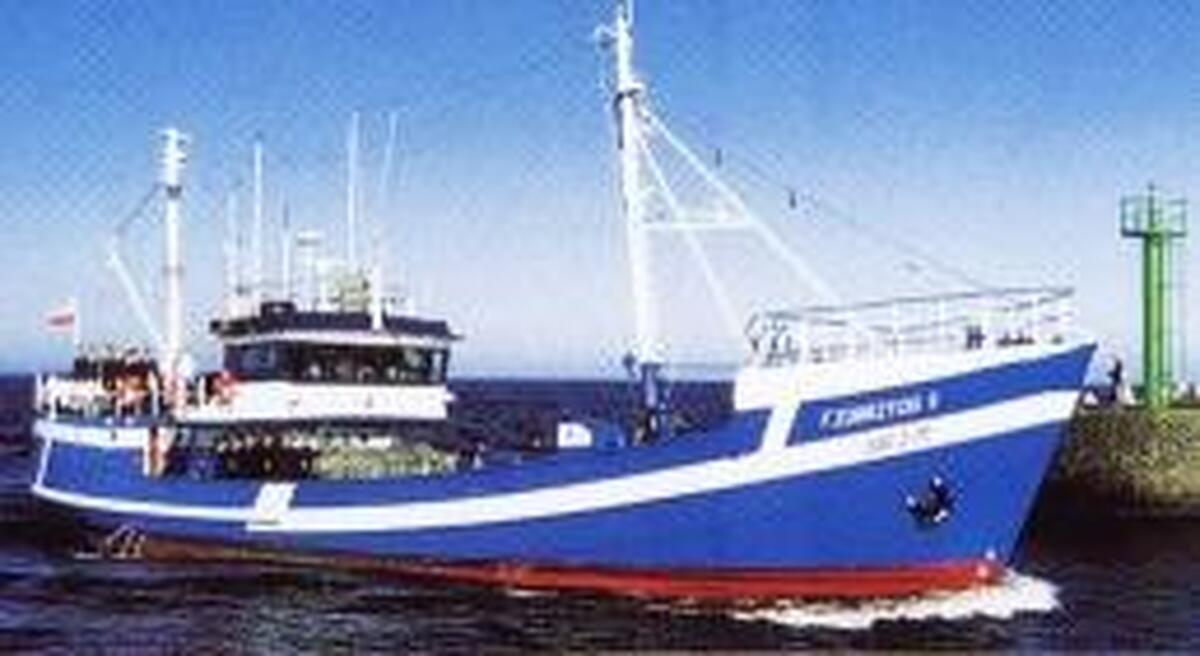 Statek szkolny M/T Franek Zubrzycki pływa z herbem macierzystego portu Darłowa