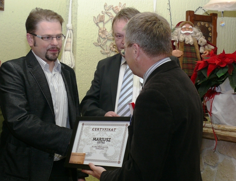 Oprócz wędkarzy przybyli na świąteczne spotkanie starosta powiatu sławieńskiego Wojciech Wiśniowski, burmistrz miasta Darłowo Arkadiusz Klimowicz, dyrektor Urzędu Morskiego Tomasz Bobin, ekipa Programu Telewizyjnego Taaaka Ryba”, przedstawiciele zarządu Okręgu Koszalińskiego PZW, redaktorzy gazet wędkarskich i sponsorzy zawodów wędkarskich. Nie zabrakło również wielu przyjaciół i sympatyków darłowskich wędkarzy. Jak zwykle o tej porze roku spotykamy się od wielu lat przy wspólnym stole mówił Piotr Ebel prezes Koła PZW „Łosoś”. Po krótkim podsumowaniu udanego sezonu wędkarskiego wszystkim przybyłym złożył życzenia świąteczne i podziękował za owocną współpracę, pomoc i sponsorowanie licznych zawodów wędkarskich. Z okazji kończących się obchodów siedemsetlecia drugiej lokacji miasta Darłowo włodarz grodu Arkadiusz Klimowicz wręczył najbardziej zasłużonym dla pomorskiego wędkarstwa okolicznościowe medale i certyfikaty Klubu Przyjaciół Darłowa. Medale otrzymała Kadra Polski w Wędkarstwie Morskim: Mariusz Getka, Witold Janiak, Roman Olma, Krzysztof Sosnowski, Jerzy Bajer, Piotr Ziółkowski, Janusz Ciesielski, Janusz Kosiński, Czesław Mogilnicki, Piotr Wach, Marek Przybylak, Zdzisław Drewnik, Jan Drewnik, Jerzy Musiał i trener kadry-Dionizy Ziemiecki, Jerzy Biedrzycki redaktor Programu telewizyjnego Taaaka Ryba, redaktorzy i dziennikarze; Marek Kluczek, Karol Zacharczyk, Józef Wróblewski – wszyscy z Wiadomości Wędkarskich, Marek Szymański – miesięcznik Wędkarski Świat, Wiesław Dębicki – Wędkarz Polski, Jerzy Szczeciński – Komisja Morska PZW, Wojciech Olszewski – profesor z Uniwersytetu Mikołaja Kopernika w Toruniu, Jarosław Mintus – Zachodniopomorskie Wędkowanie, Janusz Nyk – prezes PZW okręg Koszalin, Karol Jędrej. Specjalne Certyfikaty Klubu Przyjaciół Darłowa z rąk burmistrza miasta otrzymali: Matriusz Getka, Jerzy Szczeciński, Dionizy Ziemiecki, Jerzy Biedrzycki, Marek Kluczek, Marek Szymański, Karol Zacharczyk, Jozef Wróblewski, Wiesław Dębicki, Wojciech Olszewski, Jarosław Mintus. Również Jerzy Biedrzycki twórca Programu Telewizyjnego z okazji dwudziestolecia programu wręczył dyplomy i Odznaki Przyjaciela Programu. Otrzymali je m.in.: Piotr Ebel, Arkadiusz Klimowicz, Wiesław Szklany, Paweł Paćkowski, Ryszard Sadowski, Zbigniew Surgiel, Grzegorz Rzucidło, Piotr Pedrycz, Wiesław Dębicki, Marek Szymański, Mieczysław Siwiec, Dariusz Kos, Antoni Hołub i inni. Poza tym Piotr Ebel w ramach podziękowań wręczył burmistrzowi miasta Darłowo - Arkadiuszowi Klimowiczowi medal „Za zasługi dla wędkarstwa” przyznany przez zarząd okręgu PZW Koszalin a redaktorowi PT „Taaaka Ryba” Jerzemu Biedrzyckiemu z okazji 20-lecia pamiątkową statuetkę. Na świątecznym stole jak na wędkarzy przystało pełno było znakomitych specjałów z ryb. Nie zabrakło tradycyjnego bigosu, pierogów.