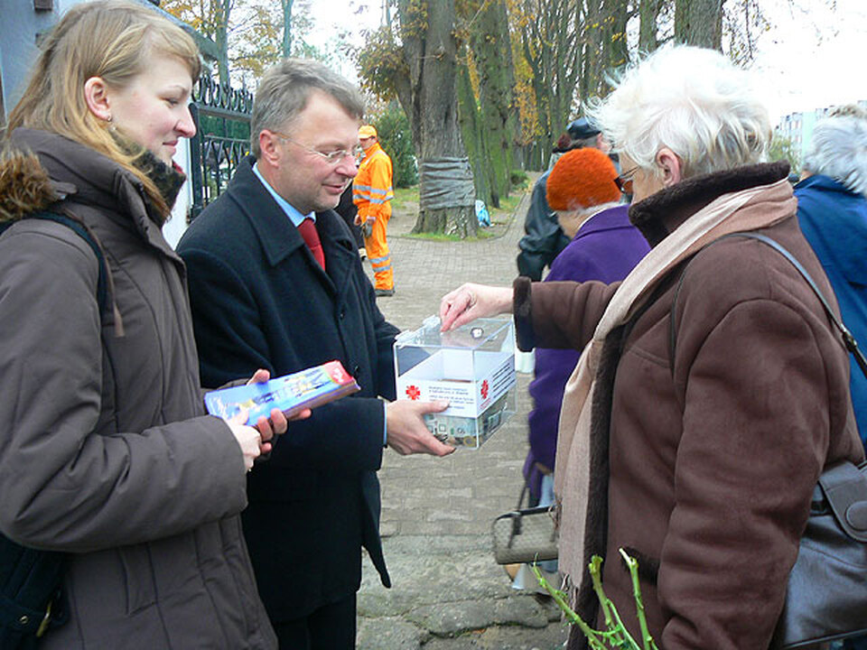 1 listopada na cmentarzu w Darłowie odbyła się po raz drugi kwesta na rzecz budowy Domu Hospicyjno – Opiekuńczego Caritas im. Biskupa Czesława Domina prowadzonego przez Caritas Diecezji Koszalińsko – Kołobrzeskiej. W kweście uczestniczyli Burmistrz Miasta Arkadiusz Klimowicz i Jego zastępca Elżbieta Karlińska oraz Przewodniczący Rady Miejskiej Zbigniew Grosz oraz Radni: Bożena Magier, Krystyna Sokolińska, Renata Potomska, Krystyna Różańska, Dorota Podgórska, Tomasz Mielczarek, pielęgniarki, członkowie Caritas Parafii pw. św. Gertrudy oraz wolontariusze. Mam nadzieje, iż stanie się tradycją kwestowanie na ten cel przez osoby znane społecznie. W wyniku przeprowadzonej zbiórki uzbieraliśmy 9.698,00 zł, która to kwota zostanie przekazane na zapłatę powstającej dokumentacji architektonicznej Domu Caritas. Składam serdeczne podziękowanie wszystkim kwestującym oraz ofiarodawcą informując zarazem, że każdego 15 dnia miesiąca w kościele pw. św. Gertrudy w Darłowie odprawiana jest Msza św. w intencji Przyjaciół, Dobrodziejów Domu Hospicyjno – Opiekuńczego Caritas.Ks. Rafał Stasiejko – dyrektor Domu