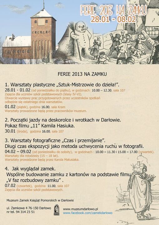 Kończąc przypominamy i zapraszamy uczniów wszystkich typów szkół powiatu sławieńskiego do bezpłatnego zwiedzania zamku z przewodnikiem muzealnym ( w grupach 15 – 25 osobowych).