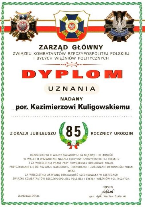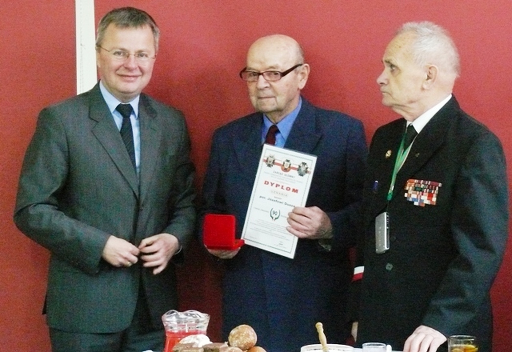 Wszystkich przybyłych serdecznie powitał Kazimierz Kuligowski przewodniczący Miejsko –Gminnego zarządu ZKRP i BWP. Tradycją tych spotkań stało się uroczyste wręczenie jubileuszowych dyplomów wystawionych przez zarząd główny Związku Kombatantów RP z podpisem gen. dyw. Wacława Szklarskiego. W tym roku włodarz Darłowa uhonorował jubilatów dodatkowo specjalnymi medalami wybitymi na okoliczność siedemsetlecia drugiej lokacji miasta Darłowo.