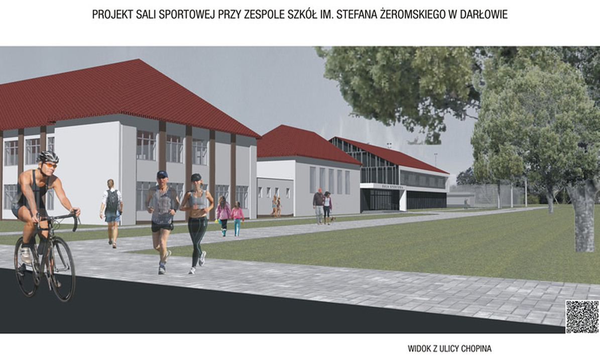 Tuż przed świętami zakończone zostały prace projektowe i miasto wystąpiło o pozwolenie na budowę hali sportowej. Początkowo wielofunkcyjna sala sportowa przy Zespole Szkół im. S. Żeromskiego miała być budowana w systemie zaprojektuj i wybuduj. Jednak okazuje się, że lepiej dla funkcjonalności obiektu i spraw przetargowych jest osobne wykonanie dokumentacji przez specjalistów i odrębna realizacja przez firmę budowlaną. Obecnie miasto dysponuje już kompletną zmodyfikowaną dokumentacją techniczną opracowaną przez Buro Projektów Chmielnicki Architekci, z siedzibą w Darłowie, ul. Powstańców Warszawskich 43.