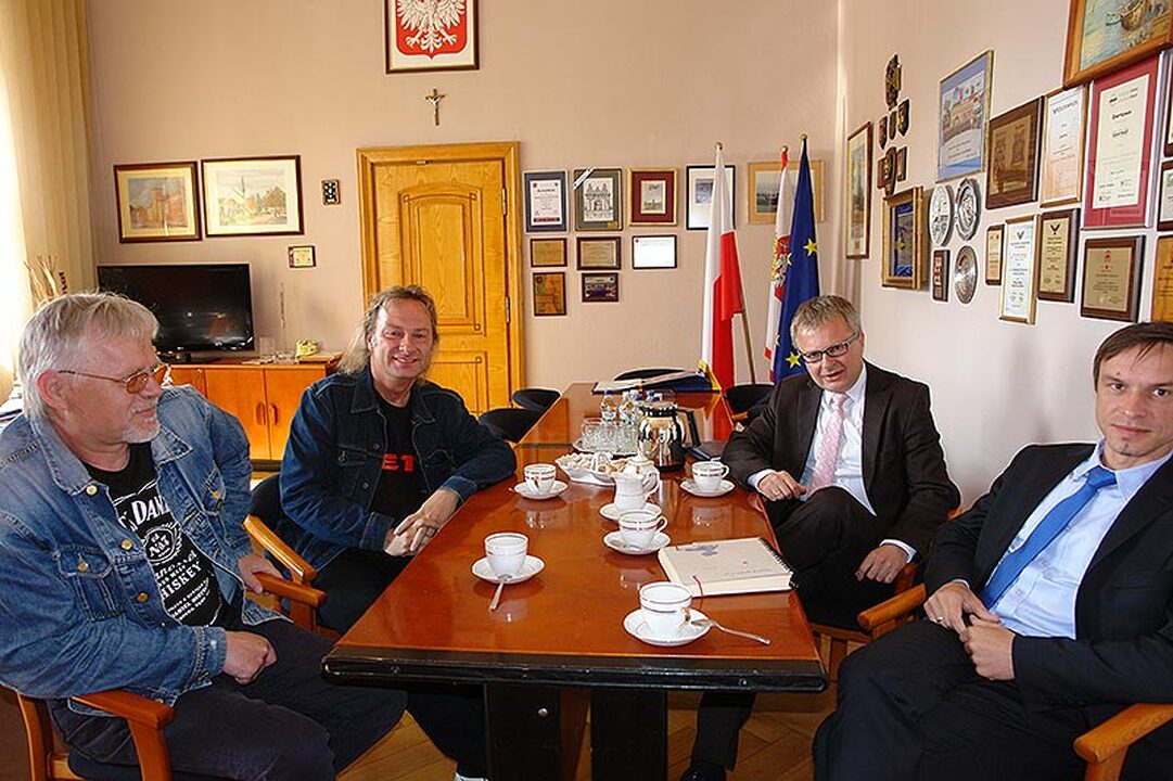 Wczoraj, w darłowskim ratuszu burmistrz Arkadiusz Klimowicz spotkał się z Grzegorzem Kupczykiem - wokalistą i muzykiem, który przez wiele lat był frontmanem zespołu Turbo. W 1989 roku założył wraz z Marią Wietrzykowską zespół CETI. Grzegorz Kupczyk w 2012 roku jako pierwszy muzyk rockowy, został uhonorowany przez prezydenta Bronisława Komorowskiego i wojewodę wielkopolskiego Złotym Krzyżem - za wybitny wkład w kulturę narodową. Muzykowi towarzyszył przyjaciel - Dariusz Czarnecki, związany zawodowo z Morską Służbą Poszukiwania i Ratownictwa (SAR),  prywatnie - przyjaciel Darłowa.  Zachęcamy do bogatej dyskografii Grzegorza Kupczyka, legendy polskiego rocka. Możemy zdradzić, że w ciągu najbliższych dni usłyszymy zespół CETI na żywo w Darłowie.