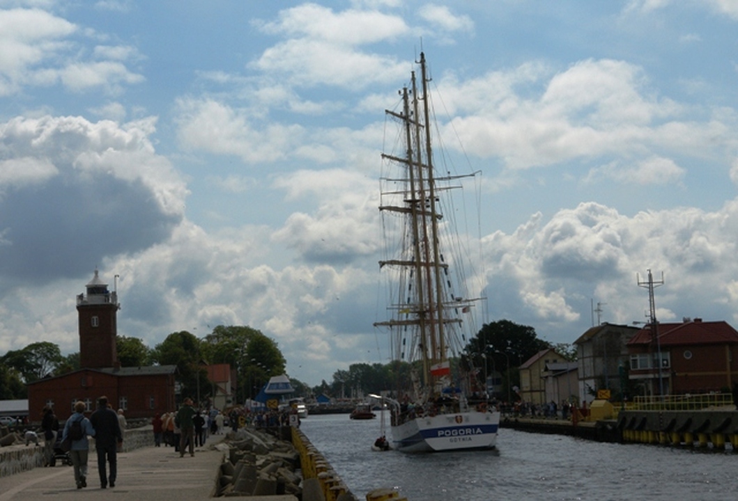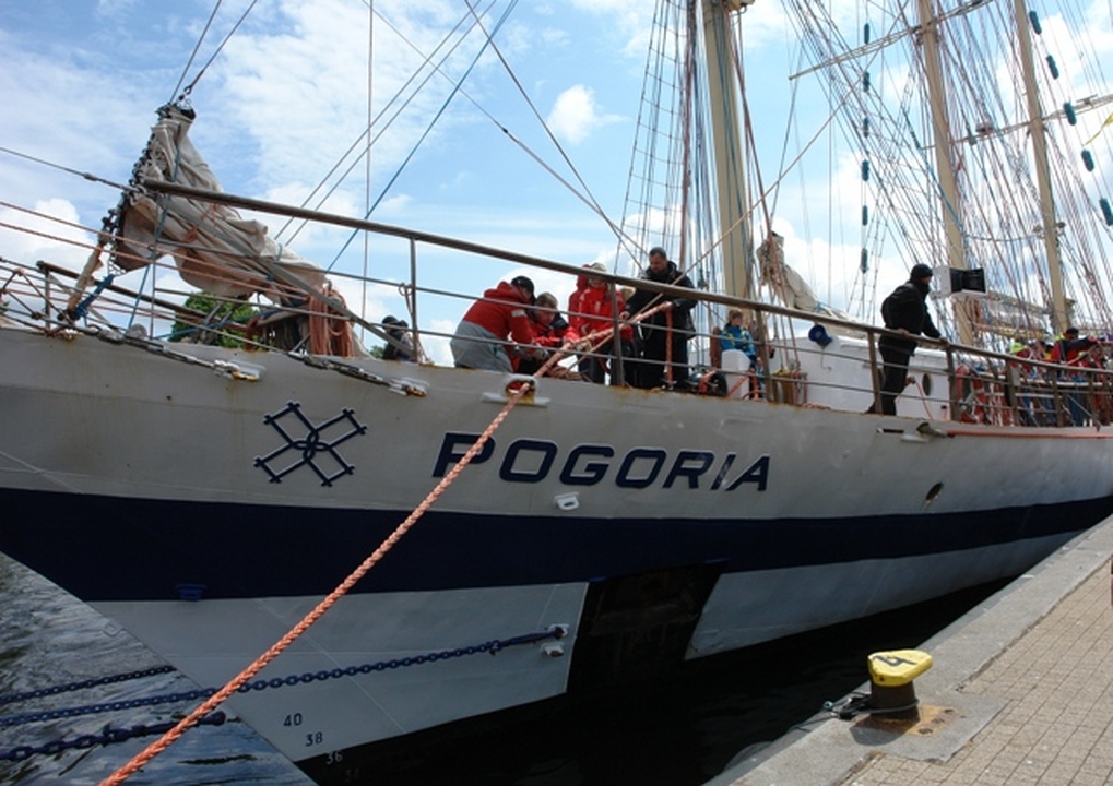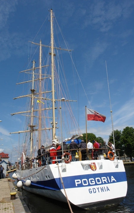 Tuż po godzinie jedenastej 27 czerwca 2013 trójmasztowa barkentyna s/y „Pogoria” zacumowała w porcie Darłowo na honorowym nabrzeżu przed Terminalem Sztuki. Goraco witali żeglarzy uczniowie ZSM i orkiestra dęta. Pierwsi na pokład żaglowca weszli Arkadiusz Klimowicz – burmistrz miasta Darłowa, Waldemar Śmigielski – dyrektor Zarządu Portu Morskiego Darłowo i Magdalena Burduk szefowa referatu promocji w UM. Włodarz miasta przekazał kapitanowi żeglugi wielkiej Maciejowi Leśnemu flagę miasta Darłowa i medal z herbem grodu. W kapitańskiej mesie kaphornowiec i zarazem dowódca żaglowca opowiedział o szkoleniowym rejsie z Bremenhaven do Gdyni, w którym udział wzięło 49 żeglarzy razem z kadrą. Zbudowany w 1980 r. żaglowiec o długości całkowitej 46,8 m, szerokości - 8 m i zanurzeniu 3,8 m nosi 15 żagli o łącznej powierzchni 909 m2. Po powitaniu burmistrz miasta zaprosił załogę żaglowca na śniadanie, po którym udostępniono żaglowiec do zwiedzania. Z Darłowa na Hel Pogoria wyruszy jutro.