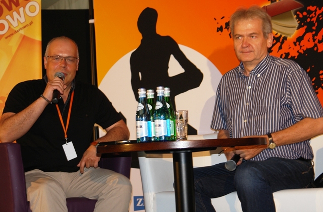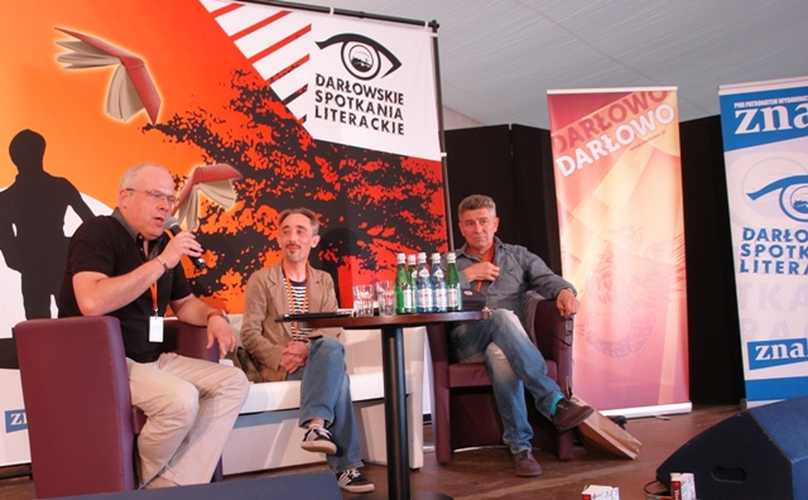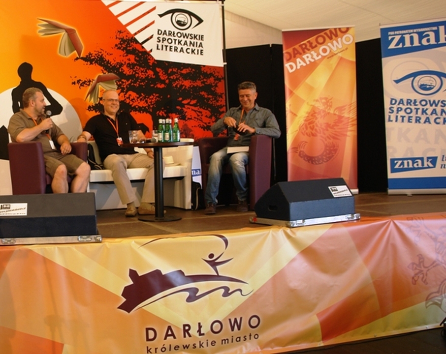 W drugim tego dnia spotkaniu autorskim z Marcinem Wrońskim o jego twórczości rozmawiał Marek Krajewski. Marcinowi Wrońskiemu- autorowi powieści, opowiadań i scenariuszy wielką popularność przyniósł cykl kryminałów retro o lubelskim śledczym, komisarzu Maciejewskim. Z rozmowy z pisarzem dowiedzieliśmy się, że Marcin Wroński- mistrz szczegółów pracuje nad opowiadaniem, którego akcja będzie umiejscowiona w Darłowie.