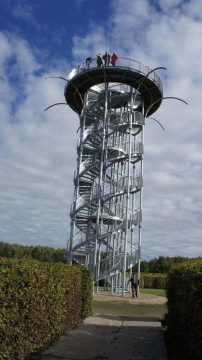 Na terenie labiryntu, który powstał dzięki zasadzeniu żywopłotu na hektarze ziemi, w samym centrum największego na świecie labiryntu grabowego o powierzchni 1ha, wysokości ścian 2m i łącznej długości korytarzy 3,2 km, stanęła 22- metrowa wieża widokowa (mająca de facto taką samą wysokość, co latarnia w Darłówku), kształtem przypominająca nić DNA. Można z niej podziwiać wysoki na dwa metry zielony labirynt, a także jego otoczenie. Dla miłośników wypoczynku na świeżym powietrzu i spacerów to nie lada gratka. Warto przy okazji dodać, że ogrody w Dobrzycy wciąż się rozbudowują. Dziś to 28 ogrodów tematycznych, które rocznie odwiedza ponad 150 tysięcy osób, ale w trakcie budowy jest tu m.in. jezioro, które zajmie 3 hektary. Do tego powstaną m.in. ogrody saun i grota energetyczna oraz kolejne ogrody tematyczne.